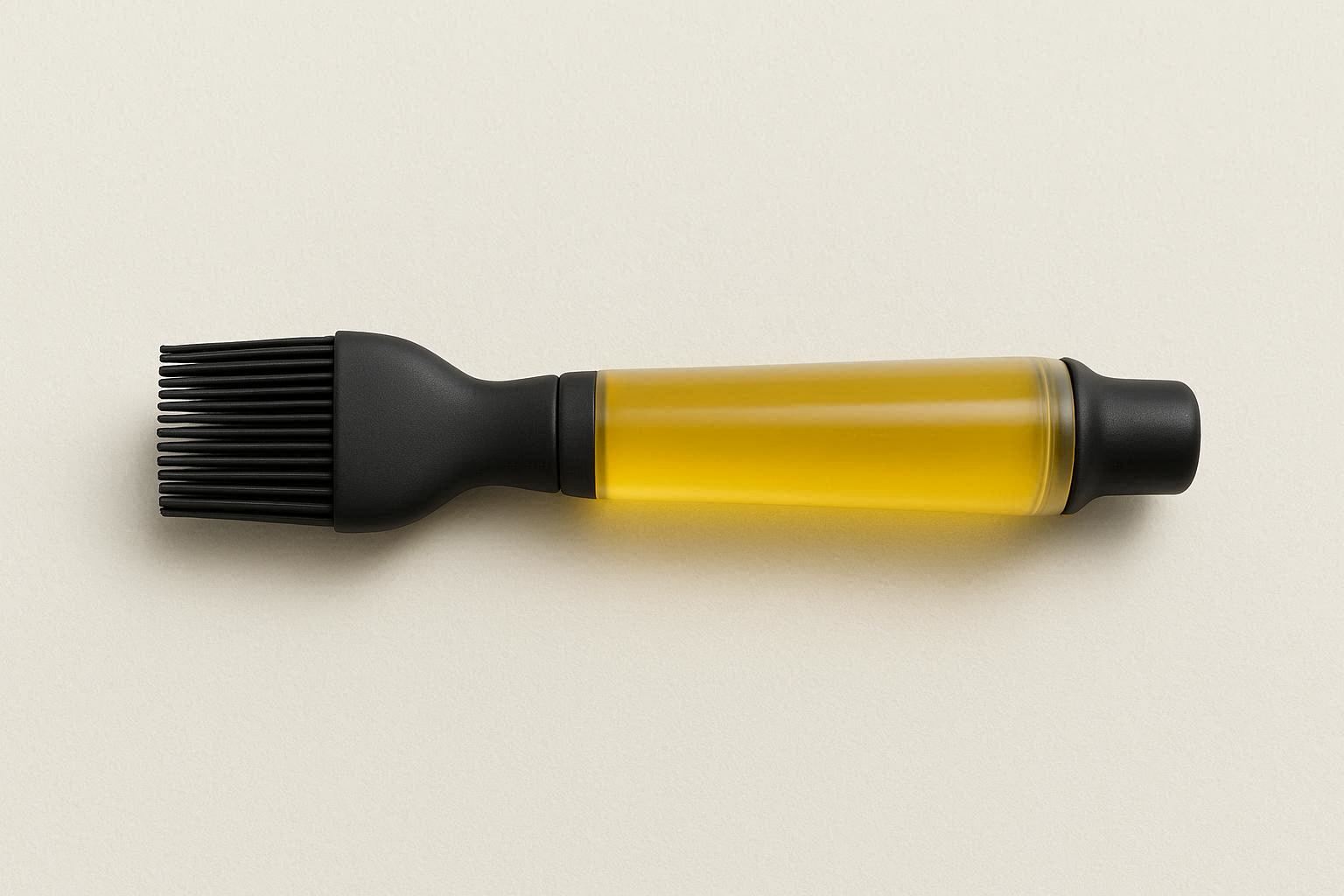 This innovative basting brush features a hollow, heat-resistant silicone handle that can be filled with your preferred oil, sauce, or melted butter. The handle has a secure screw-on cap and the brush head attaches via a twist-and-lock mechanism. Simply fill the handle, attach the head, and gently squeeze to dispense liquid directly through the silicone bristles for mess-free application.