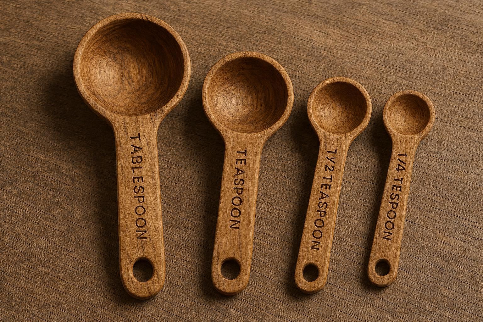 The spoons are perfect for measuring dry ingredients like flour, sugar, and spices, and they??re easy to clean with warm soapy water. They??re compact and stackable, making them easy to store in drawers or hang on a hook for display. With their natural, earthy look, these wooden measuring spoons are a stylish and functional addition to any kitchen, especially for those who love a rustic or farmhouse aesthetic.